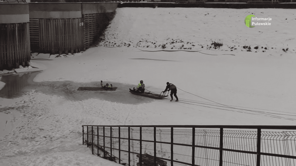 Ćwiczenia ratownictwa wodno-lodowego w puławskiej Marinie