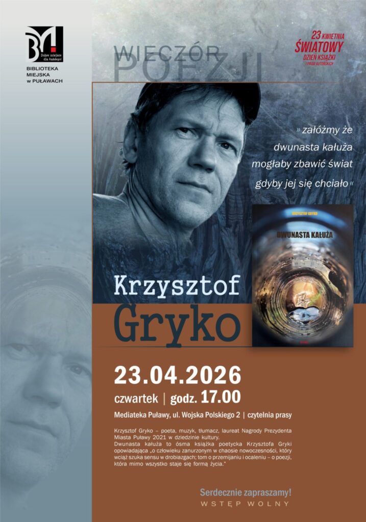 Biblioteka Miejska w Puławach zaprasza na kolejne spotkanie Dyskusyjnego Klubu Książki, które odbędzie się 22 kwietnia w Mediatece. Tym razem wydarzenie poświęcone będzie zagadnieniom związanym z elitami władzy, polityką wewnętrzną oraz mechanizmami kształtującymi życie publiczne. Gościem spotkania będzie Artur Goszczyński – autor publikacji „Pace et bello parati. Działalność polityczno-wojskowa Lubomirskich za panowania Zygmunta III i Władysława IV”. Podczas prelekcji opowie o…