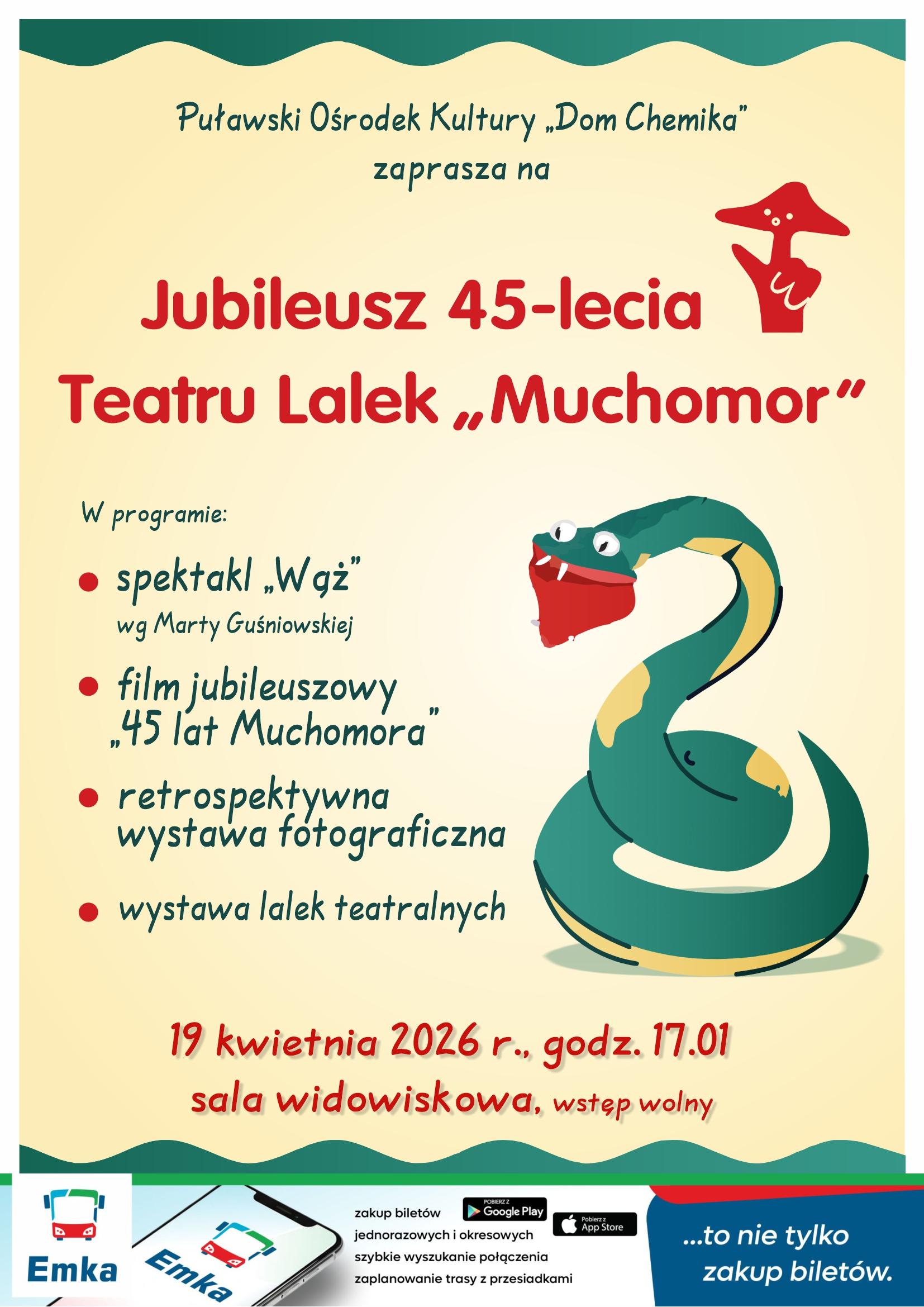 Puławski Ośrodek Kultury „Dom Chemika” zaprasza miłośników sztuk teatralnych do świętowania jubileuszu…
