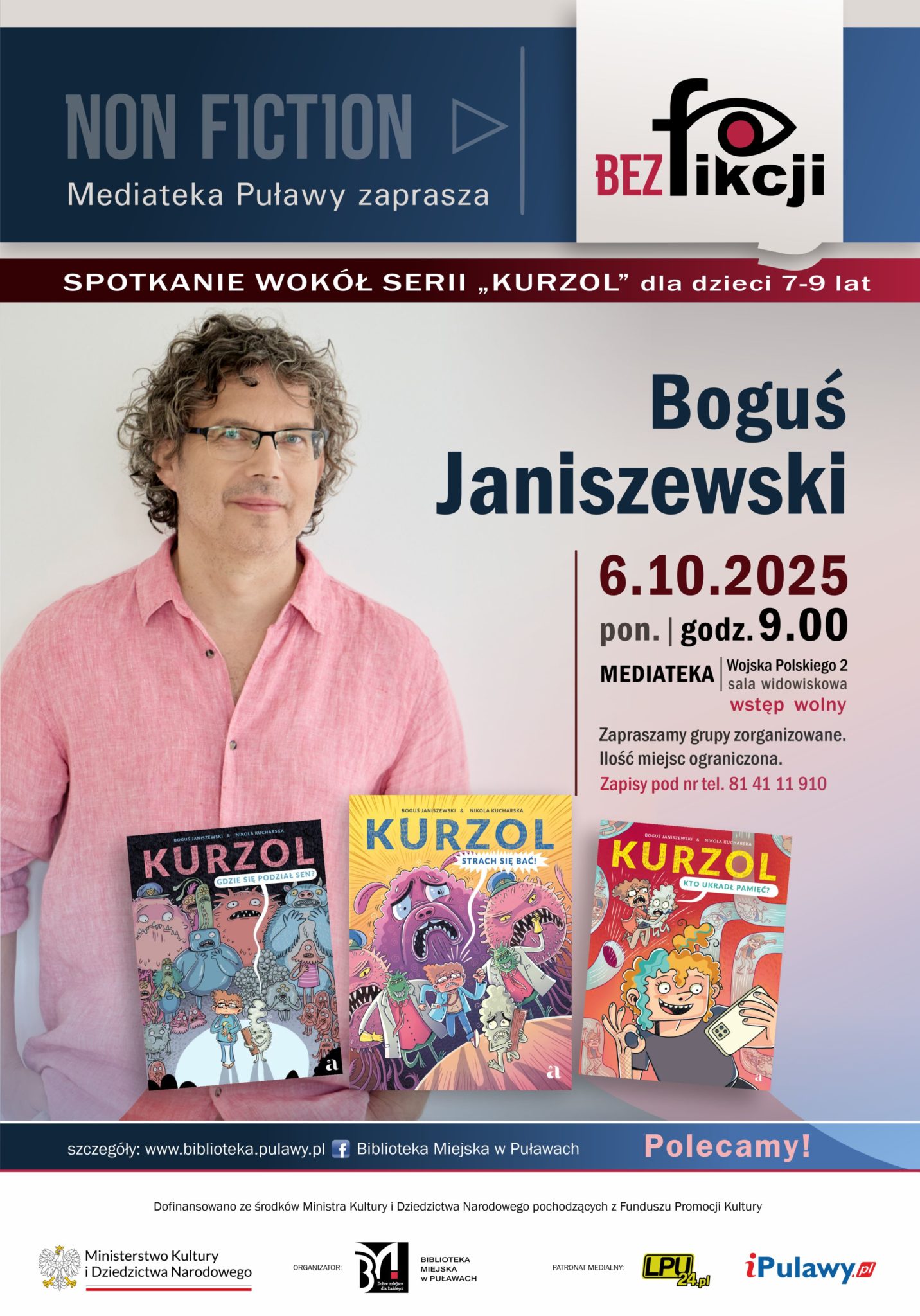 Biblioteka Miejska w Puławach serdecznie zaprasza na wyjątkowe spotkania z Bogusiem Janiszewskim – autorem popularnych książek dla dzieci i młodzieży. Wydarzenia odbędą się w poniedziałek, 6 października i skierowane są do grup zorganizowanych.