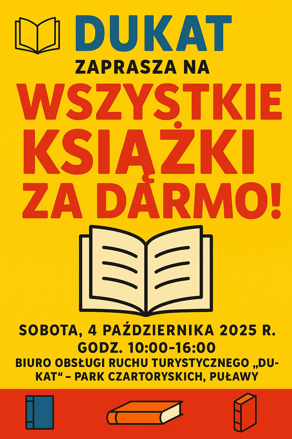 Stowarzyszenie Przeszłość-Przyszłości zaprasza na kolejną edycję swojej popularnej akcji rozdawania książek. Już w najbliższą sobotę w godzinach 10:00–16:00 w Biurze Obsługi Ruchu Turystycznego „Dukat” w Parku Czartoryskich na miłośników literatury będzie czekać prawdziwe książkowe eldorado.
