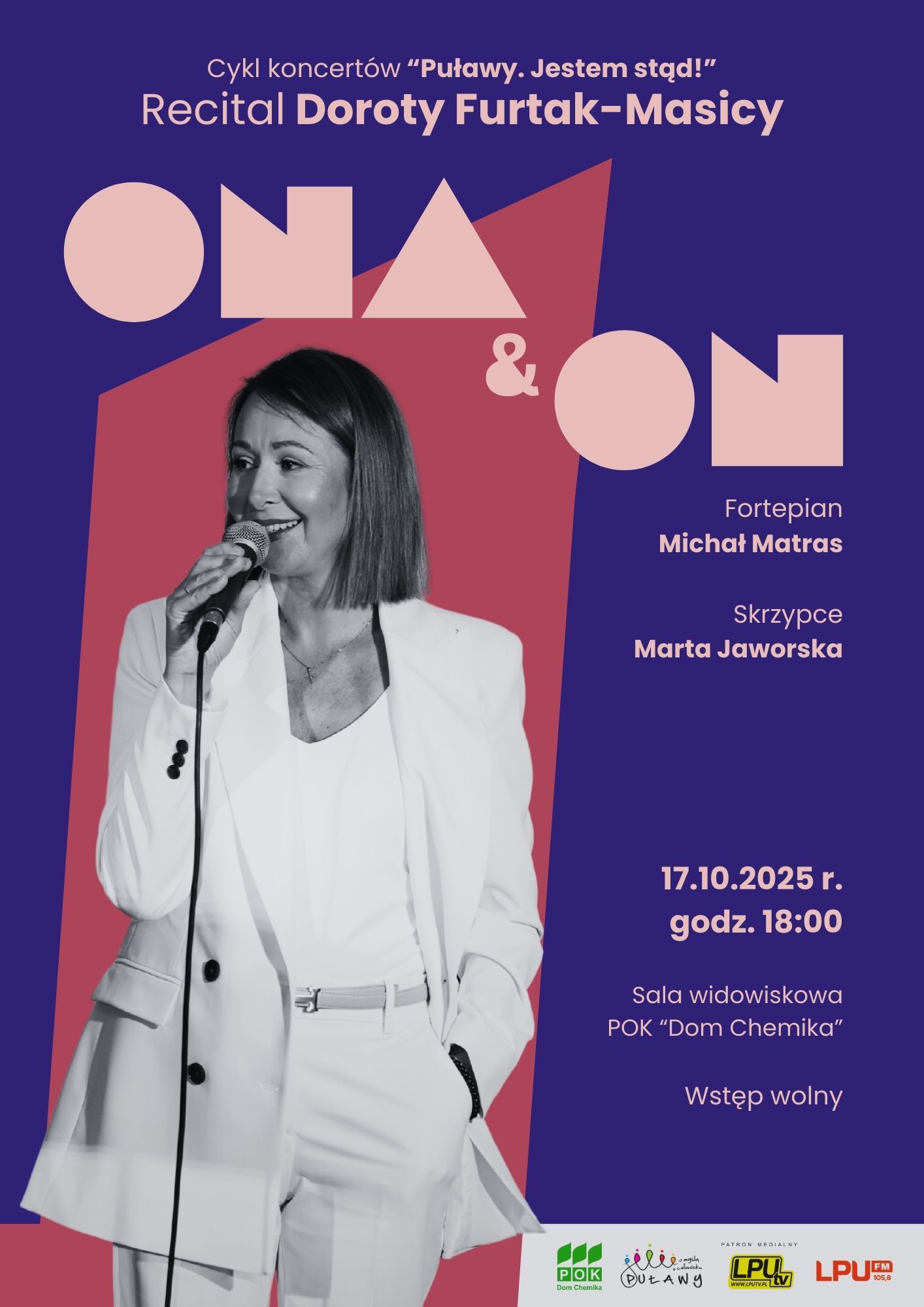 Dorota Furtak-Masica swoje pierwsze artystyczne kroki stawiała właśnie w Puławach, pod okiem Michała Matrasa – pedagoga, muzyka i promotora młodych talentów. Podczas recitalu zatytułowanego „Ona i On”, artystce na scenie towarzyszyć będą Michał Matras przy fortepianie i Marta Mazurek na skrzypcach.