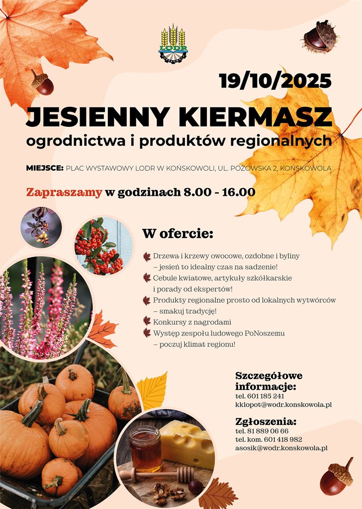 Miłośnicy ogrodnictwa, lokalnych smaków i regionalnego folkloru mogą zainteresować się tym wydarzeniem. W najbliższą niedzielę w Końskowoli odbędzie się bowiem Jesienny Kiermasz Ogrodnictwa i Produktów Regionalnych, organizowany przez Lubelski Ośrodek Doradztwa Rolniczego w Końskowoli.
