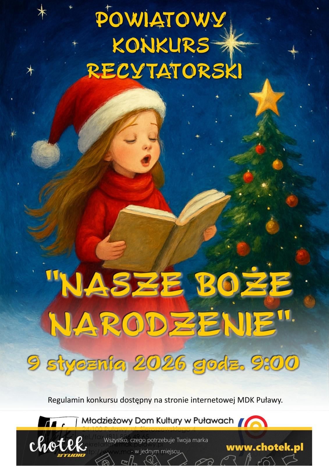 MDK w Puławach zorganizuje 5. edycję konkursu recytatorskiego „Nasze Boże Narodzenie”