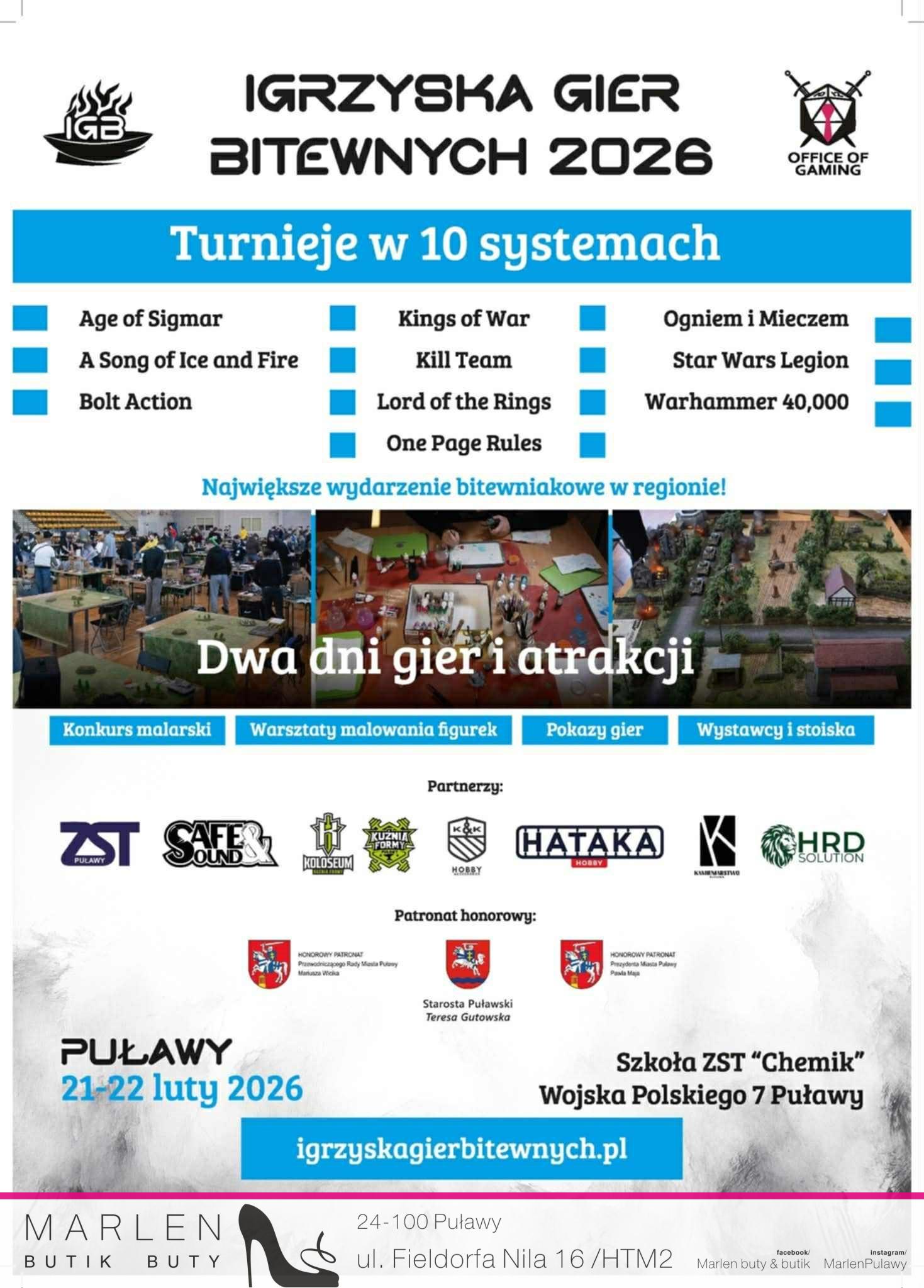 Wydarzenie odbędzie się w Zespole Szkół Technicznych w Puławach i potrwa dwa dni – 21 i 22 lutego. Szczegółowe informacje dotyczące programu, zapisów i zasad uczestnictwa można znaleźć m.in. na stronie internetowej igrzyskagierbitewnych.pl.
