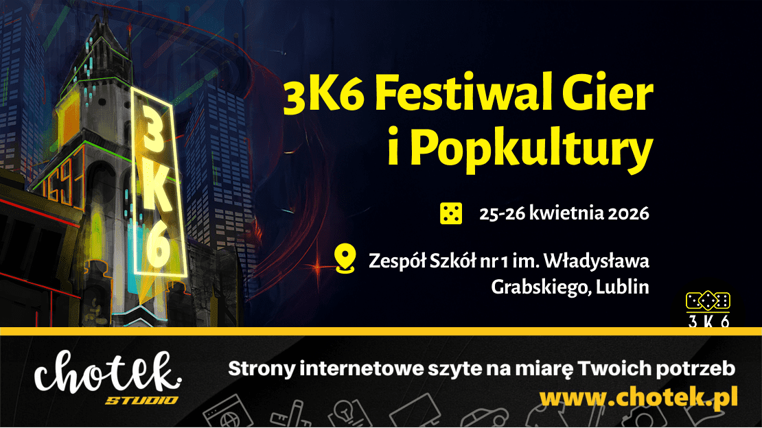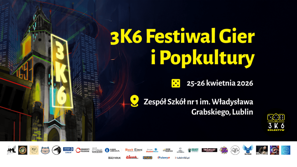 Przypomnijmy, że flagowe wydarzenie 3k6 Kolektywu organizowane jest od 2023 roku, a tegoroczna edycja będzie jego czwartą odsłoną i odbędzie się 25 i 26 kwietnia w Zespole Szkół nr 1 im. Władysława Grabskiego w Lublinie. Program ogólny jak i rozpiska sesji RPG 3k6 Festiwalu Gier i Popkultury dostępne są na stronie internetowej 3k6 Kolektywu. – www.3k6.games.