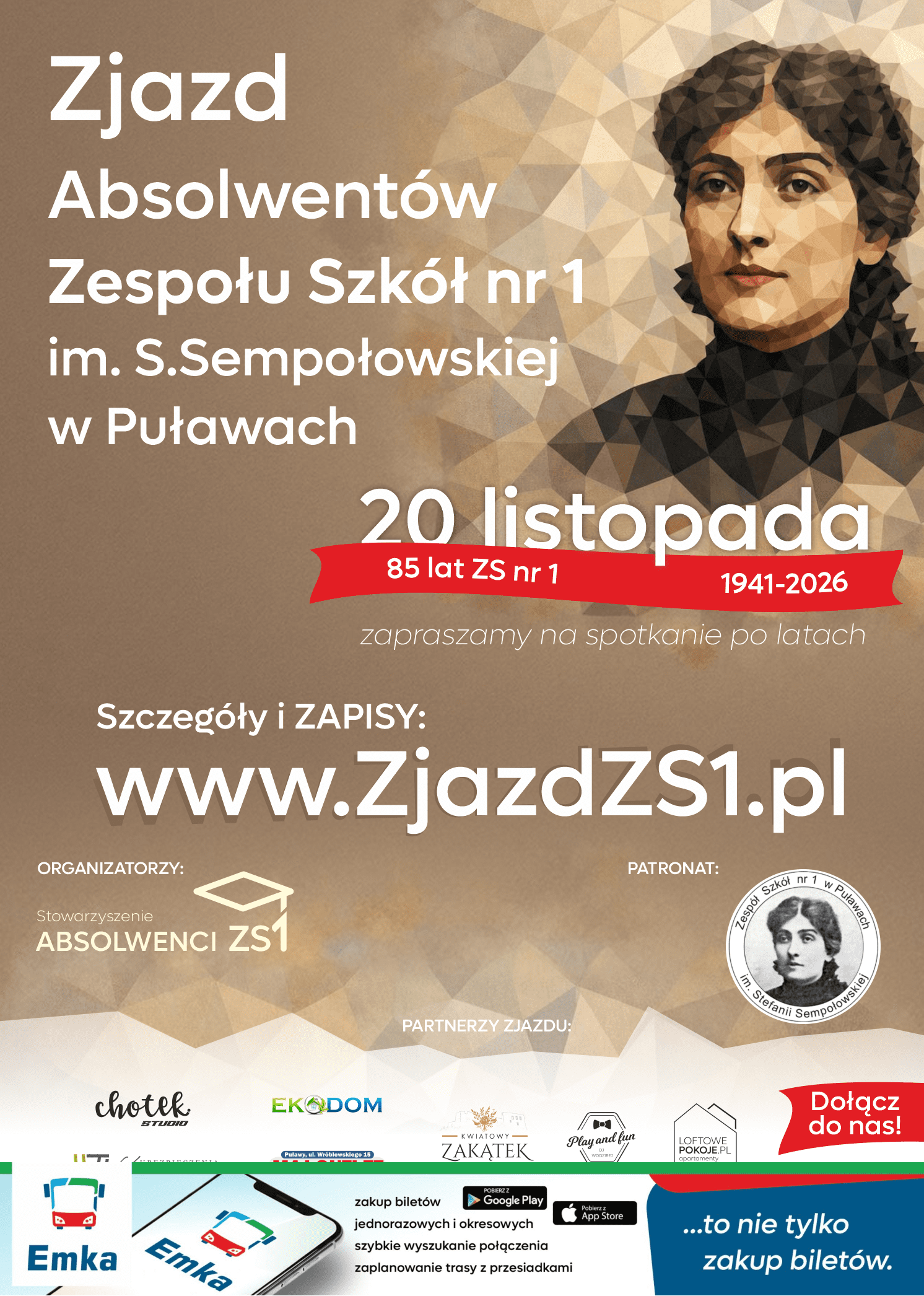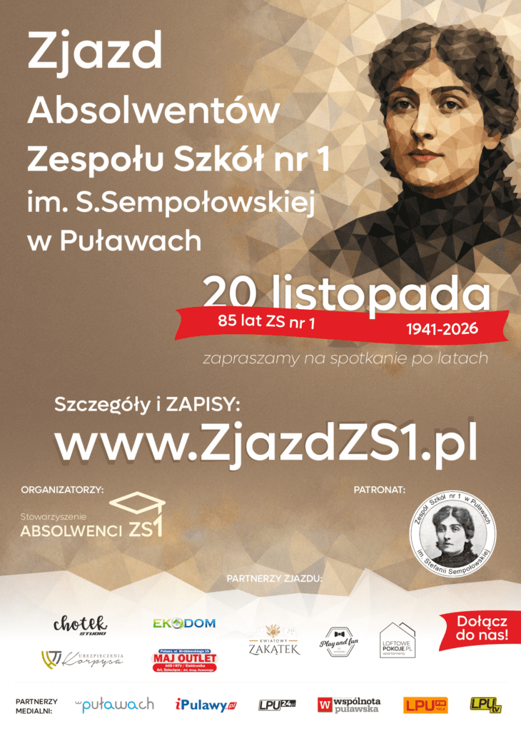 Zbliża się wyjątkowe wydarzenie dla kilku pokoleń absolwentów. Trwają zapisy na IV Zjazd Absolwentów Zespołu Szkół nr 1 im. Stefanii Sempołowskiej w Puławach, organizowany z okazji 85-lecia szkoły.