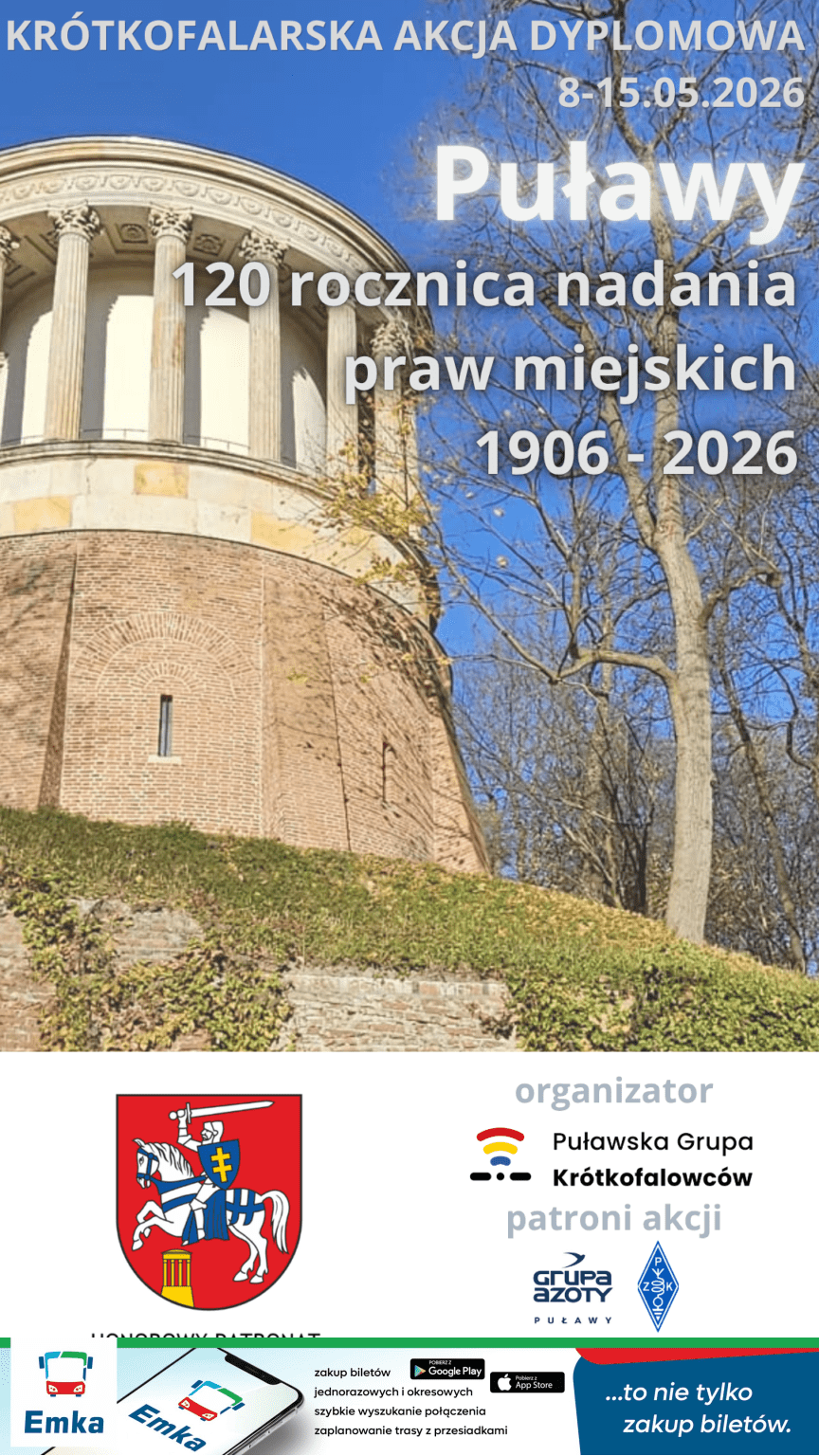 Puławska Grupa Krótkofalowców ma propozycję dla licencjonowanych krótkofalowców oraz nasłuchowców z kraju i z zagranicy. Chodzi o udział w wyjątkowej akcji dyplomowej, organizowanej z okazji 120. rocznicy nadania praw miejskich Puławom.