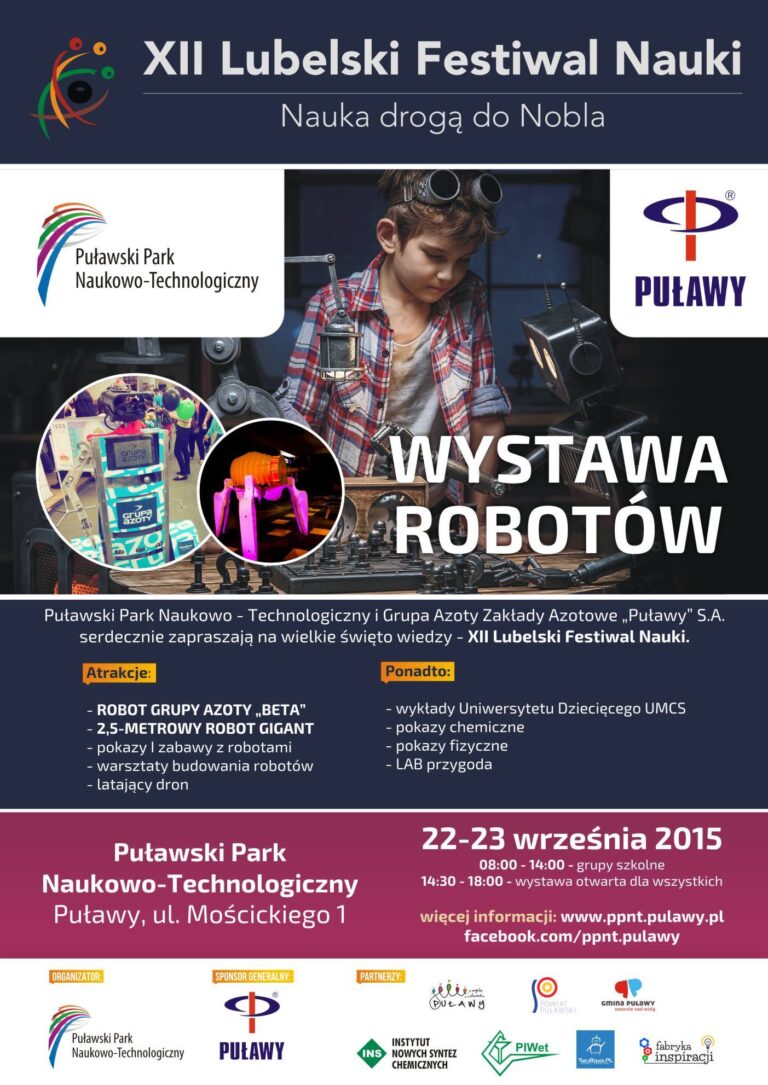 Serdecznie zapraszamy do udziału w XII Lubelskim Festiwalu Nauki, którego tegoroczna edycja odbywa się pod hasłem „Nauka drogą do Nobla”. Puławski Park Naukowo-Technologiczny po raz pierwszy włączył się w ideę tego wielkiego święta nauki.