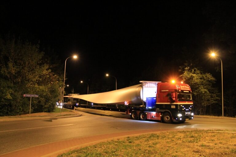 Wielkogabarytowy transport wiatraków. (Zdjęcia)