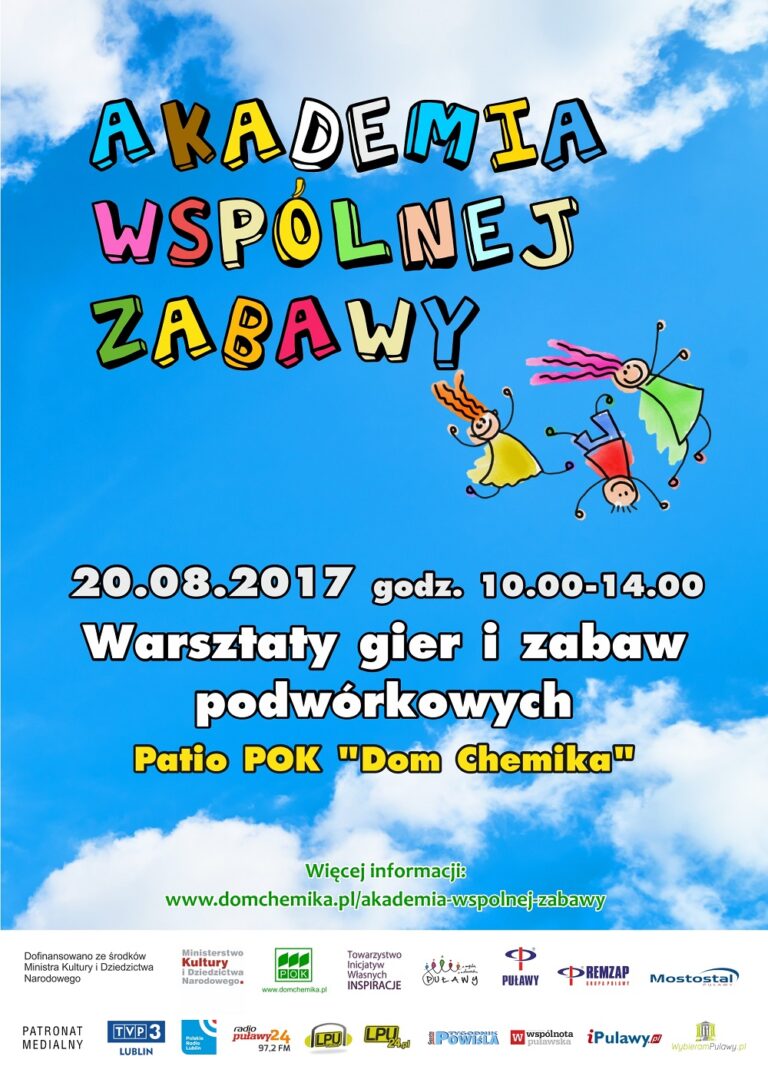 W najbliższą niedzielę, 20 sierpnia, Puławski Ośrodek Kultury Dom Chemika zaprasza na warsztaty z cyklu Akademia Wspólnej Zabawy. Warsztaty gier i zabaw podwórkowych skierowane są do dzieci w wieku od 5 roku życia i ich rodziców i opiekunów. Warsztaty rozpoczną…