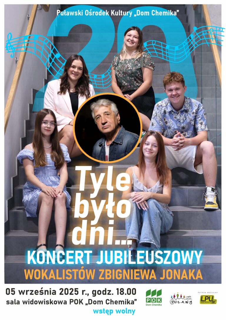 Puławski Ośrodek Kultury „Dom Chemika” przygotował dla mieszkańców niezwykłe wydarzenie muzyczne. 5 września o godzinie 18:00 w sali widowiskowej POK „Dom Chemika” odbędzie się Koncert Jubileuszowy „Tyle było dni…”, zorganizowany z okazji 20-lecia zajęć wokalnych prowadzonych przez Zbigniewa Jonaka. W…