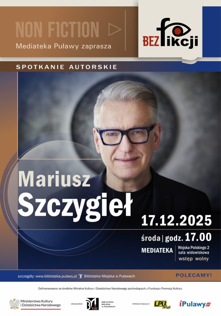 Biblioteka Miejska w Puławach zorganizuje spotkanie autorskie z Mariuszem Szczygłem – jednym z najbardziej cenionych polskich reporterów, felietonistów i pisarzy. Autor, wielokrotnie nagradzany, m.in. Nagrodą Literacką Nike oraz Europejską Nagrodą Książkową, pojawi się w Puławach, by opowiedzieć o swojej książce…