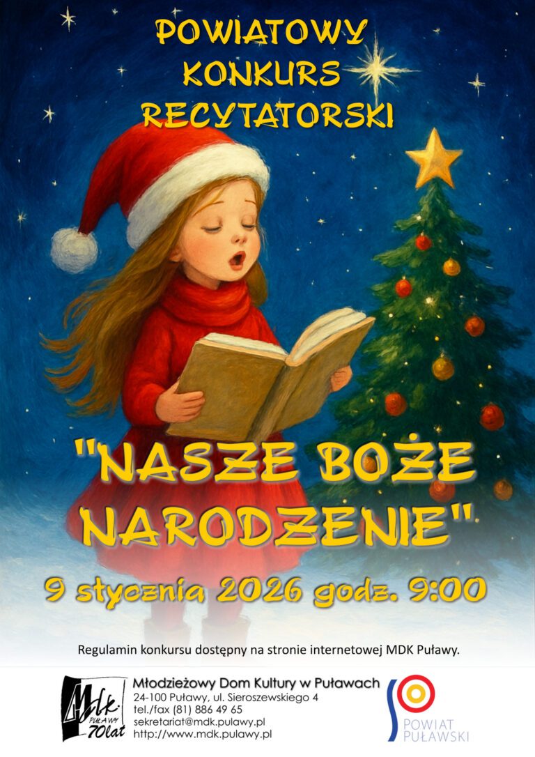 MDK w Puławach zorganizuje 5. edycję konkursu recytatorskiego „Nasze Boże Narodzenie”