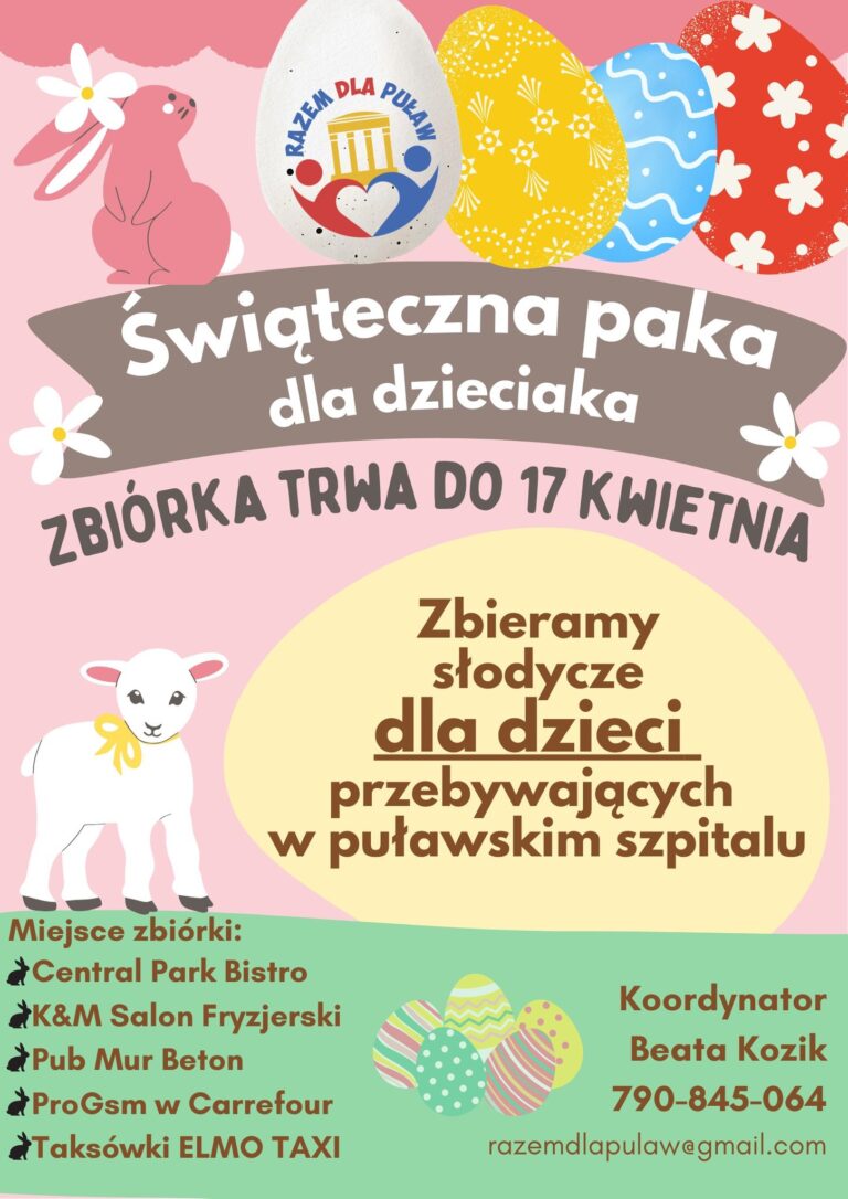 Świąteczna Paka dla Dzieciaka – pod takim hasłem Stowarzyszenie Razem dla Puław organizuje zbiórkę wielkanocną dla dzieci przebywających w puławskim szpitalu.