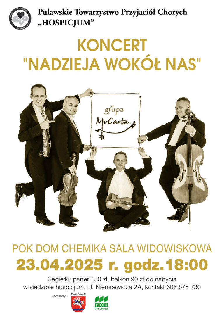 Pod koniec kwietnia w naszym mieście odbędzie się koncert na rzecz Puławskiego Towarzystwa Przyjaciół Chorych Hospicjum.